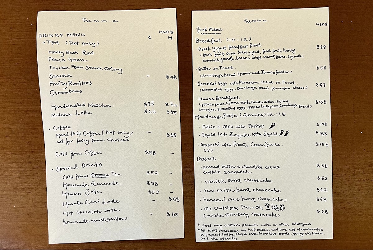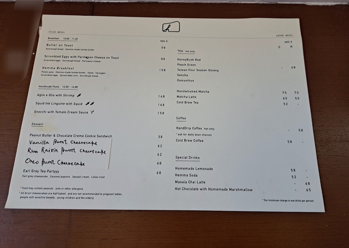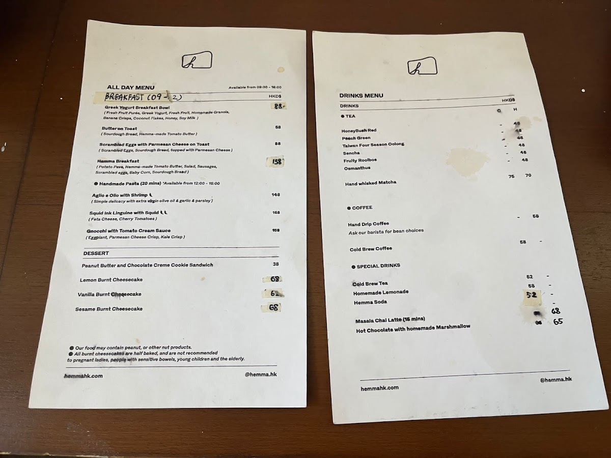 Hemma Hong Kong offers an impressive menu that combines a variety of sweet and savory options, perfect for any time of the day. For those with a sweet tooth, the standout dessert options include the Vanilla Burnt Cheesecake, Sesame Burnt Cheesecake, and Rum Raisin Burnt Cheesecake. Each of these cheesecakes offers a unique flavor twist, with the Chocolate Whisky Cheesecake and Cookies and Cream Cheesecake adding an indulgent and rich touch. The Tiramisu Basque Cheesecake is another notable dessert, offering a delightful fusion of the classic tiramisu flavor with the smooth texture of cheesecake.