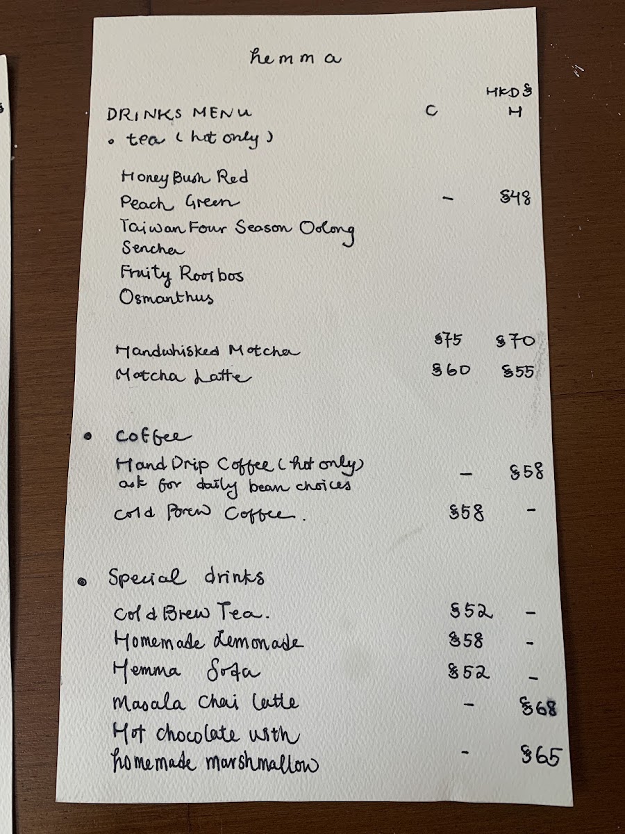 Hemma's menu is thoughtfully curated, offering a delightful mix of indulgent desserts, comforting meals, and refreshing beverages, making it a must-visit spot for anyone craving a diverse yet satisfying dining experience.